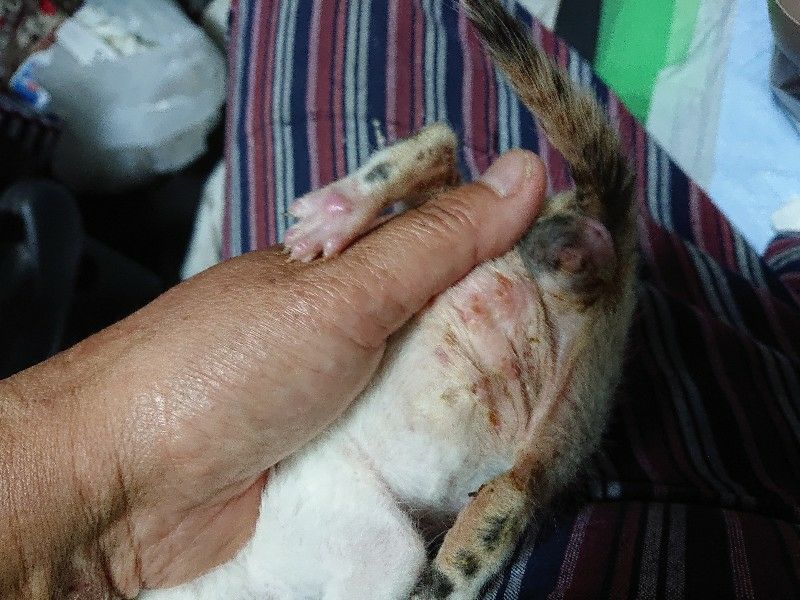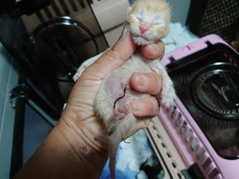 自力排尿・排便ができない負傷子猫と
