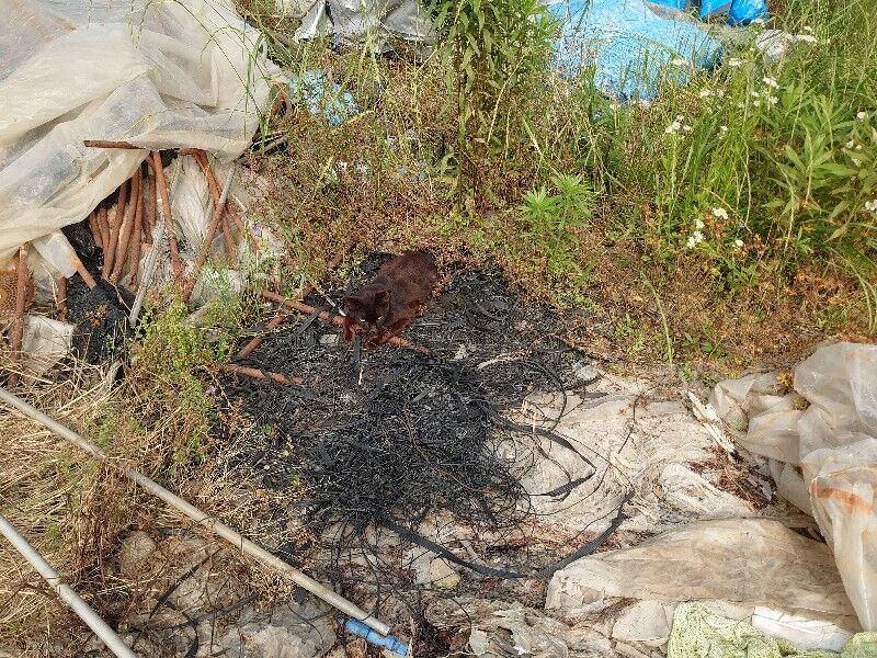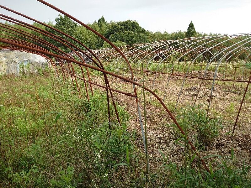 壊れたビニールハウスを利用した