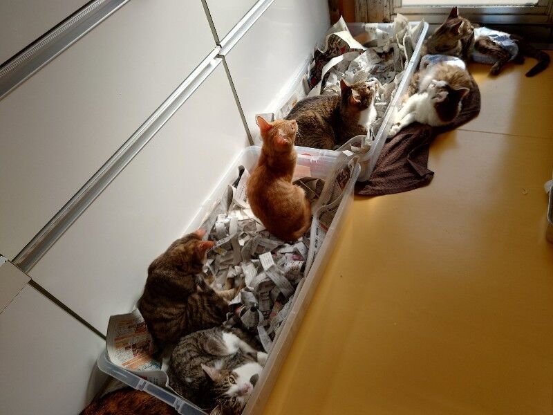 4時間ほど段ボール箱の中で