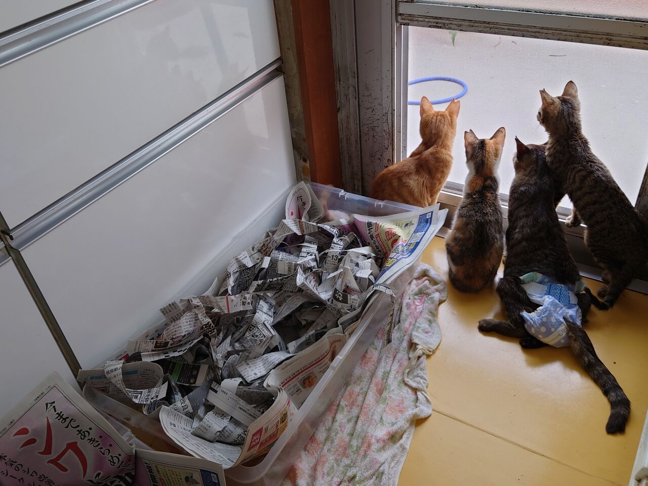 子猫たちがいる部屋のケージで