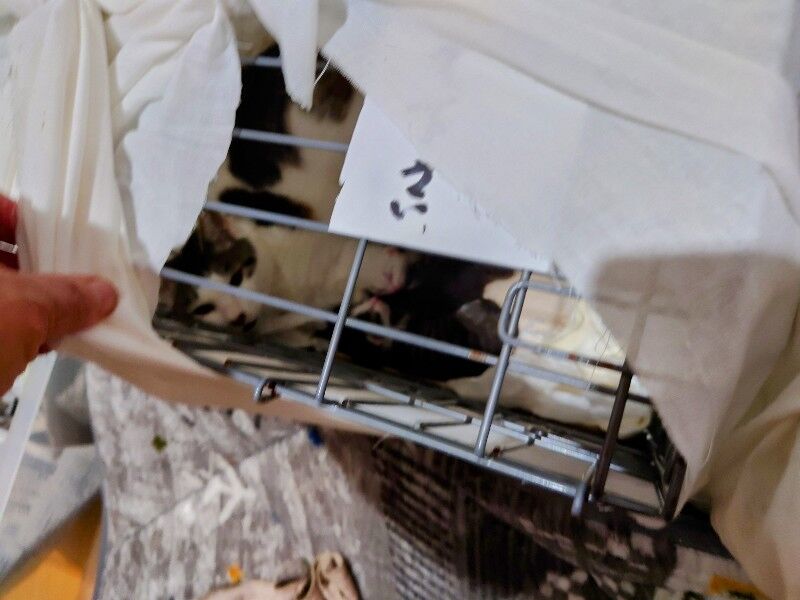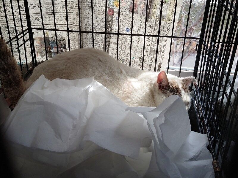 連れて帰ったケージのまま