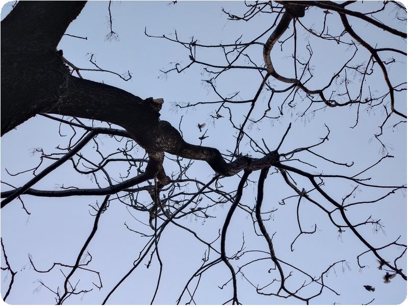 スズメの餌置き場になった