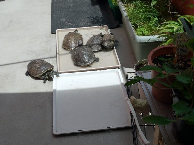 ミドリガメがいます。