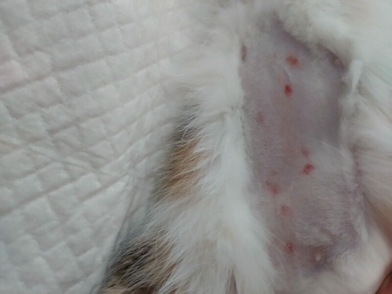 お腹の赤いポチポチが